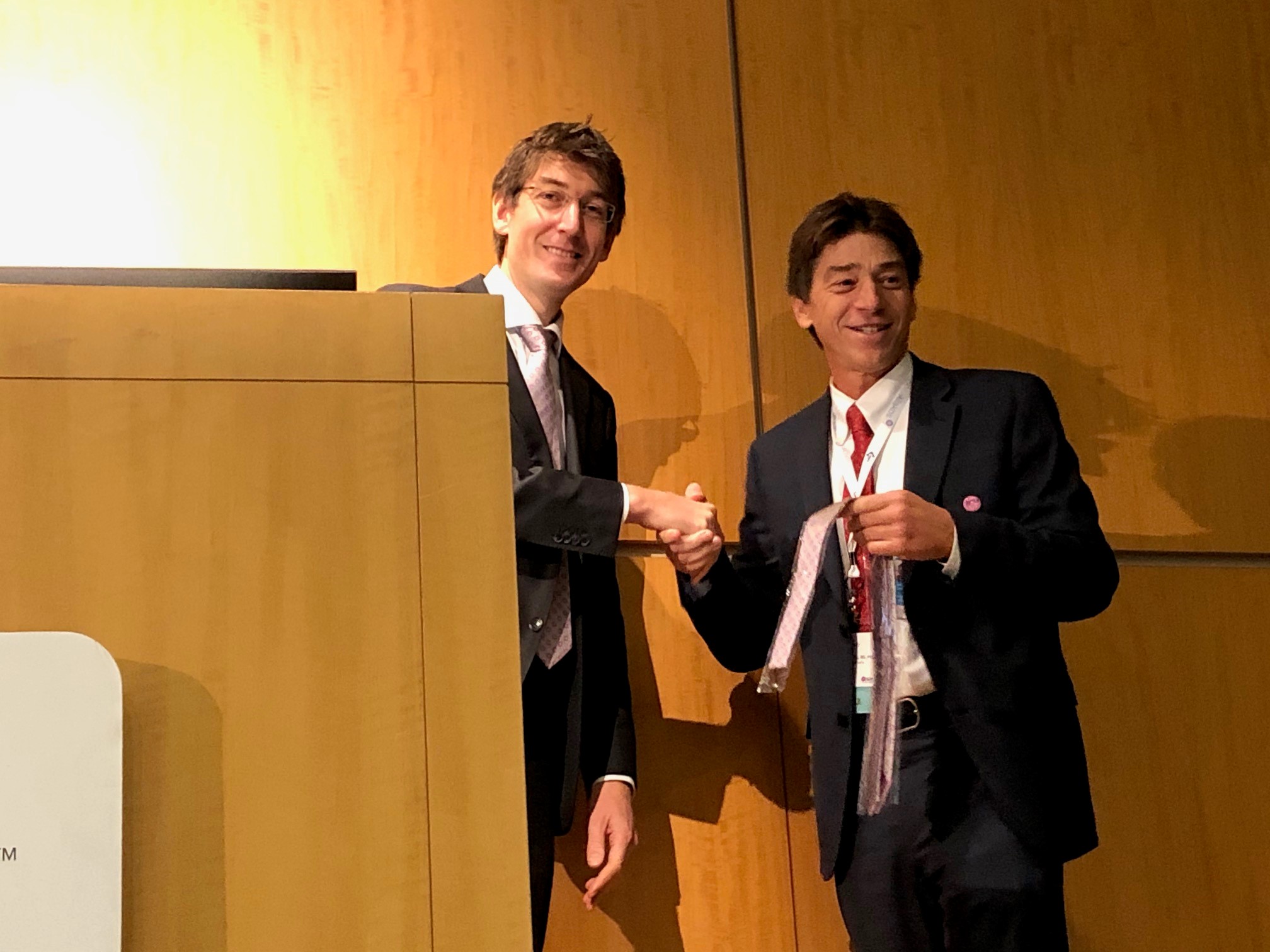 EUREOS president dr Arjan Bredenoord was invited to attend the CURED conference in Cincinnatti, OH on November 7-9th 2019. CURED, or Campaign Urging Research for Eosinophilic Diseases, is a North American not for profit foundation dedicated to those suffering from Eosinophilic Gastrointestinal Diseases (EGID), including eosinophilic esophagitis (EoE), eosinophilic gastritis (EG), eosinophilic colitis (EC) and other eosinophilic disorders. Conference organizer dr Marc Rothenberg was offered the EUREOS tie as gesture of appreciation after dr Bredenoord’s lecture on Eosinophilic diseases in Europe.